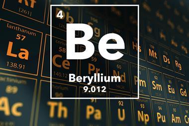 Устойчив на воздухе, благодаря покрывающей металл пленке оксида BeO. В соединениях проявляет степень окисления +2. Большинство солей Б. хорошо растворимы в воде, их растворы имеют кислую реакцию. Гидроксид Be(OH)2 амфотерен. При проведении высокотемпературных процессов испаряющиеся со единения Б. образуют аэрозоли и, разлагаясь, образуют оксид BeO.